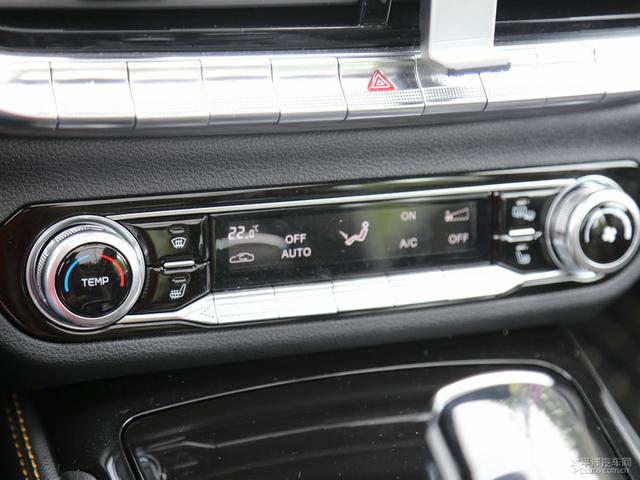 奔腾T77 PRO的自动空调采用了传统的按键+旋钮的形式,亮黑色面板与银色镀铬件凸显档次感,并带有一块屏幕可以显示风量、温度等信息,物理按键的设计更方便驾驶员行车过程中的操作,伸手即开/关。配置方面,全系标配PM2.5过滤装置与后排空调出风口。